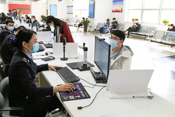 图为国家税务总局石家庄市桥西区税务局办税服务厅工作人员